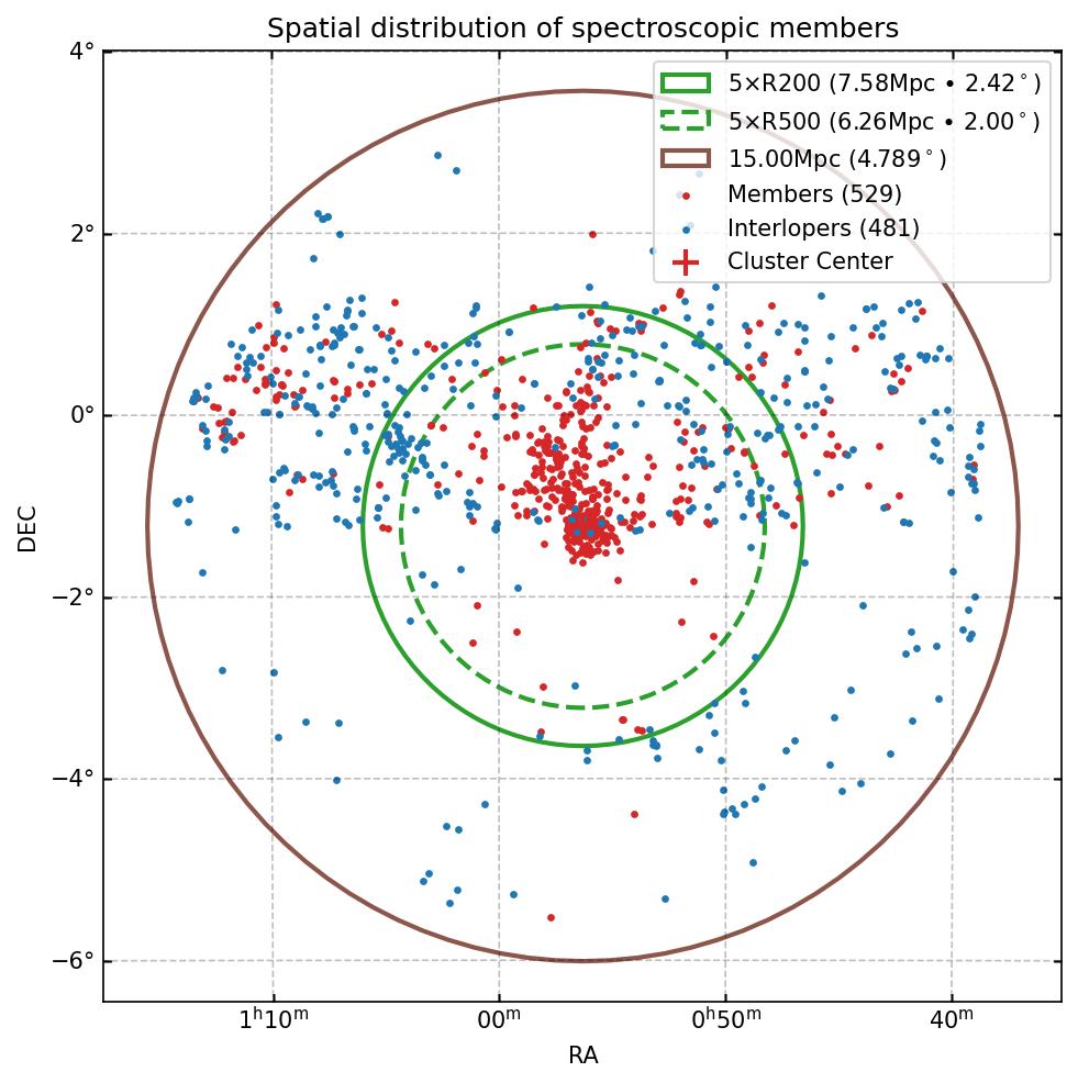 | 5×R200 | 7.579 Mpc (2.420 deg) |
