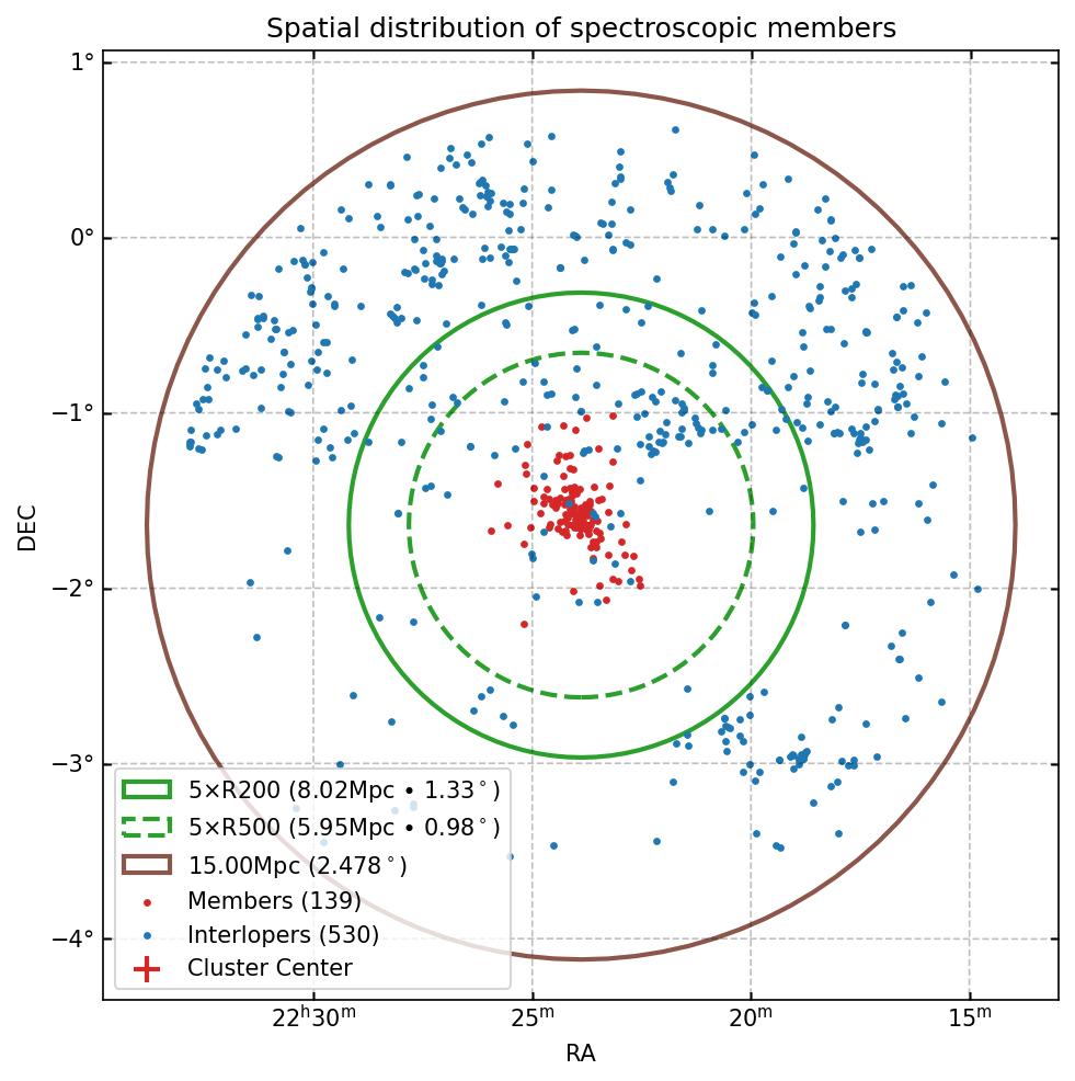 | 5×R200 | 8.025 Mpc (1.326 deg) |