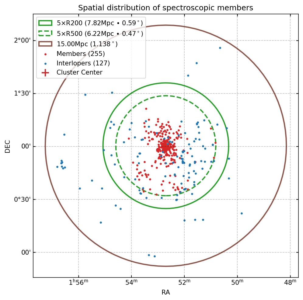 | 5×R200 | 7.817 Mpc (0.593 deg) |