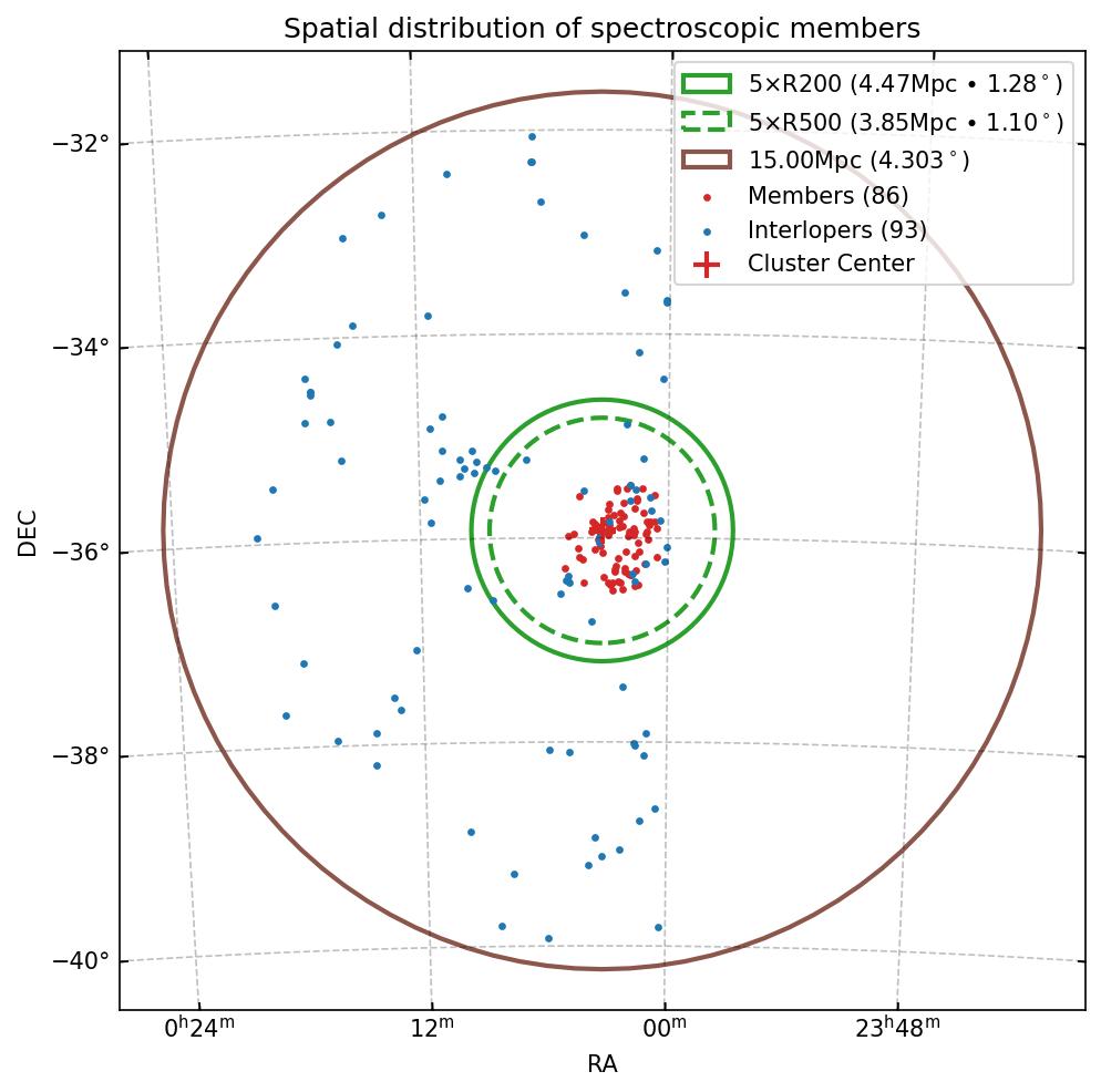 | 5×R200 | 4.470 Mpc (1.282 deg) |