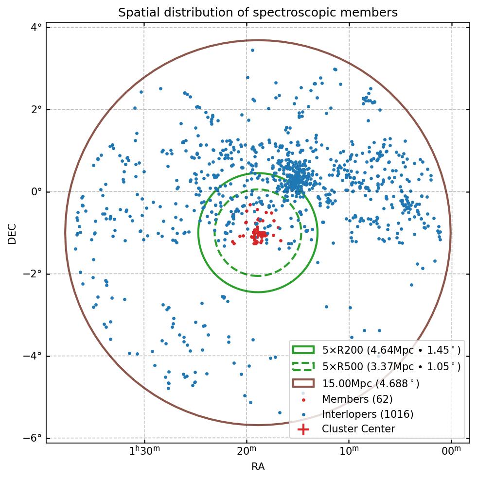 | 5×R200 | 4.640 Mpc (1.450 deg) |
