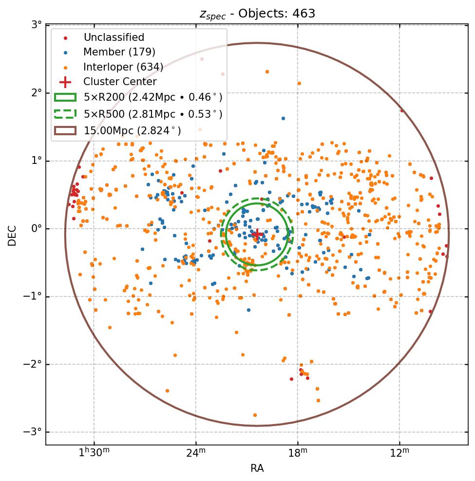 | 5×R200 | 2.425 Mpc (0.456 deg) |