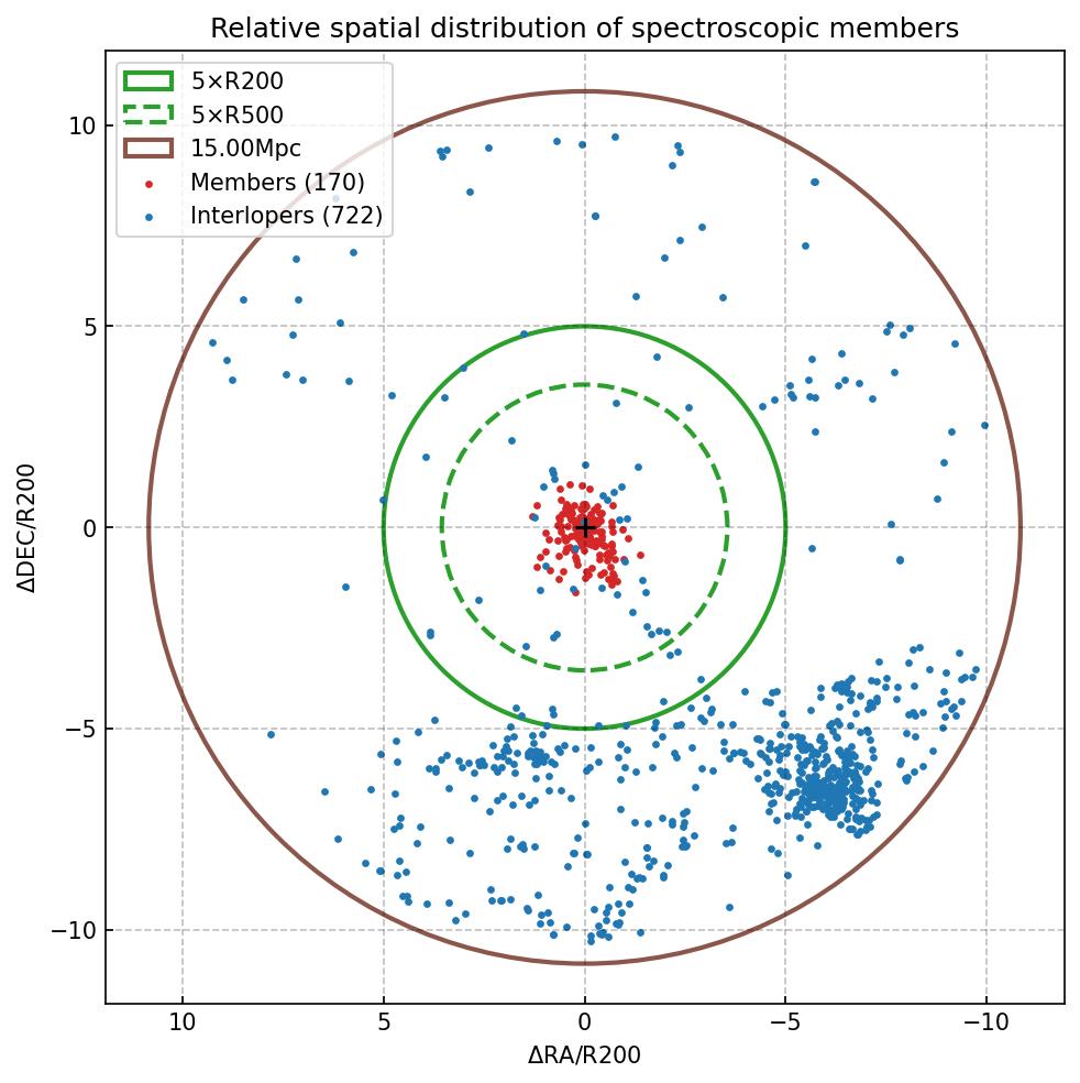 | 5×R200 | 6.918 Mpc (1.707 deg) |