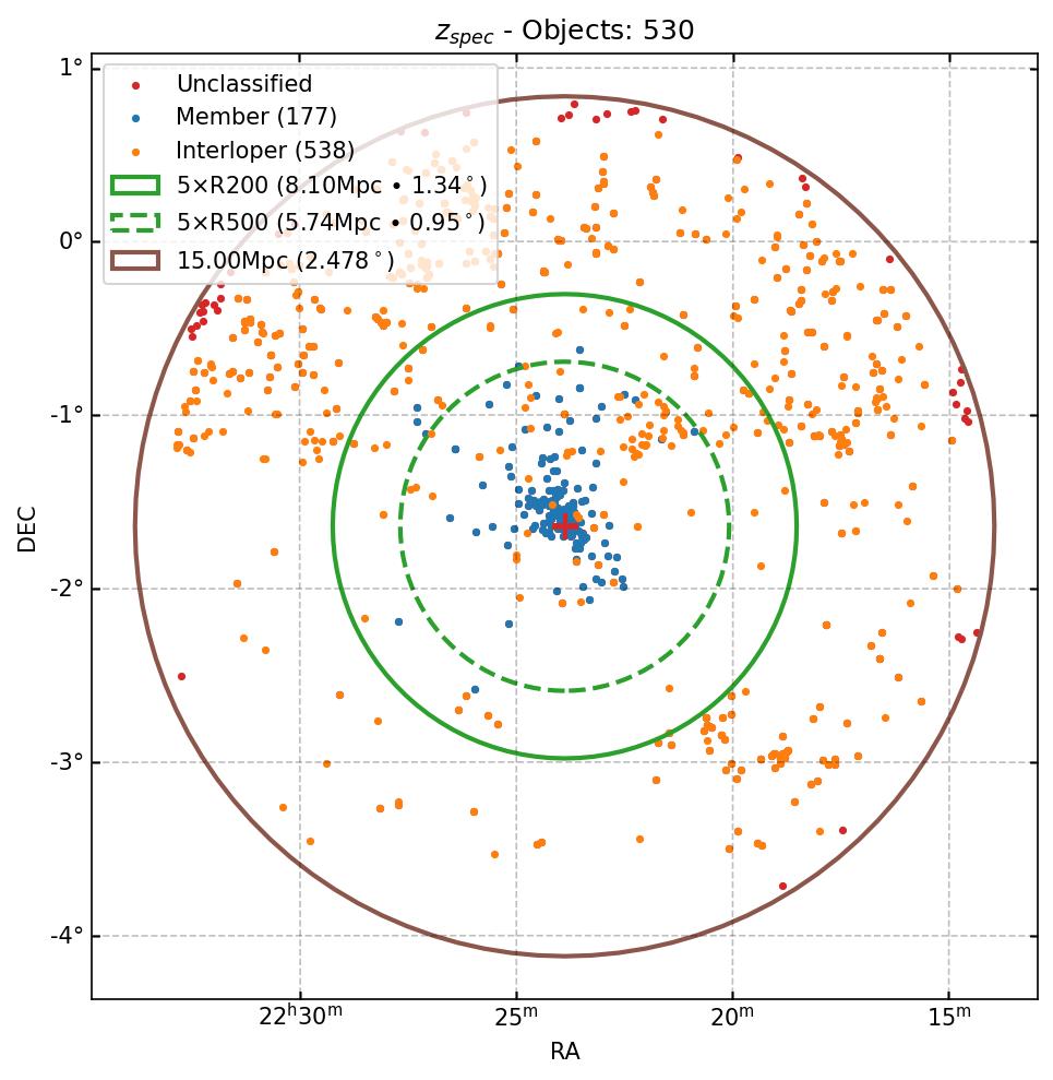| 5×R200 | 8.098 Mpc (1.338 deg) |