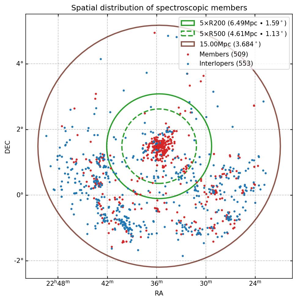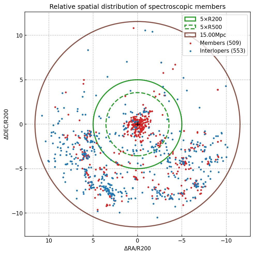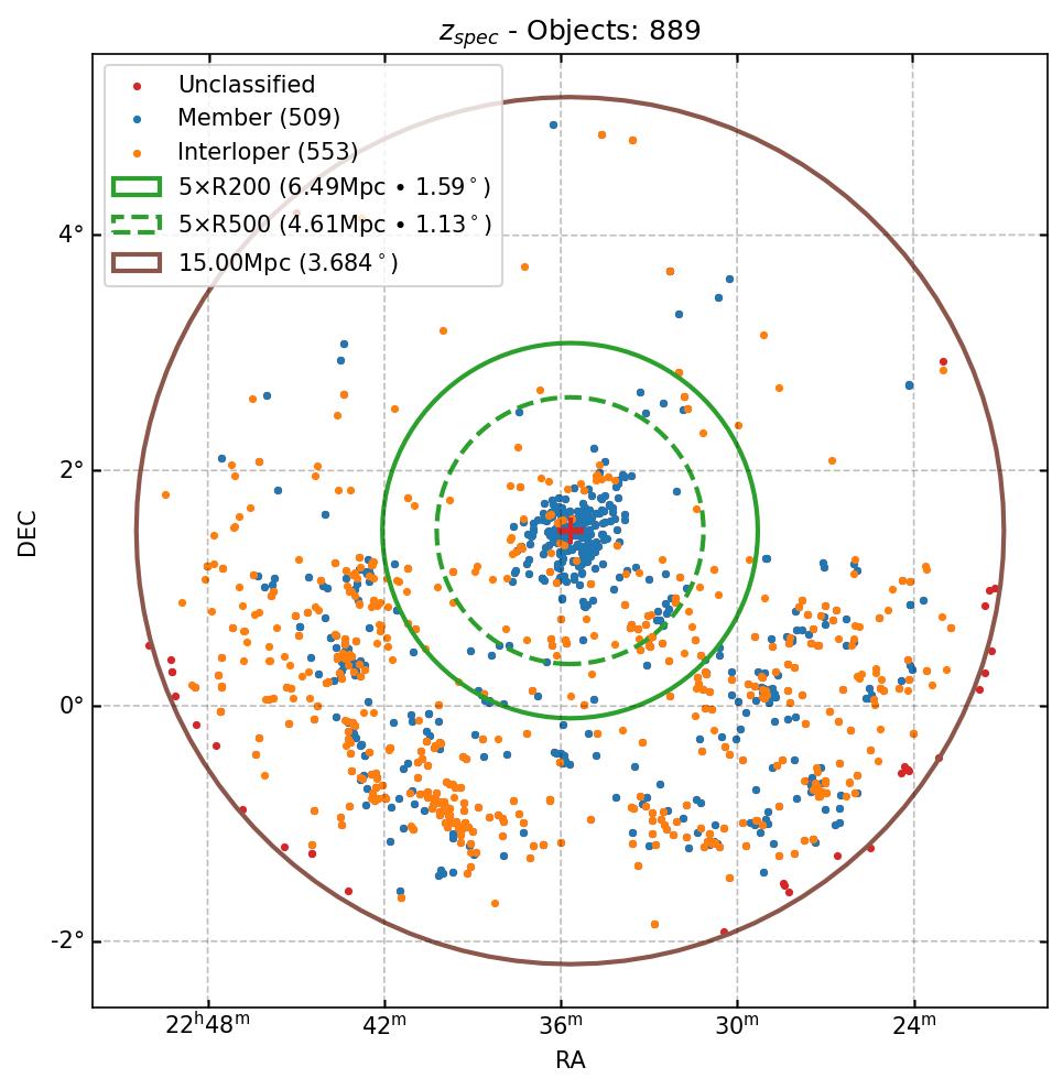 | 5×R200 | 6.491 Mpc (1.594 deg) |