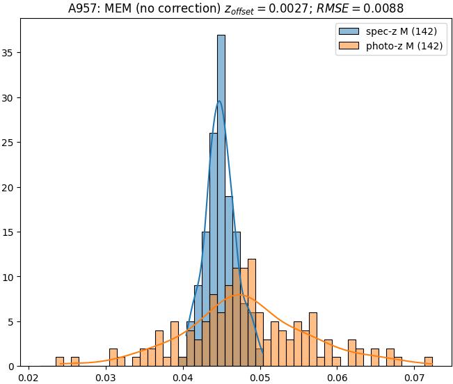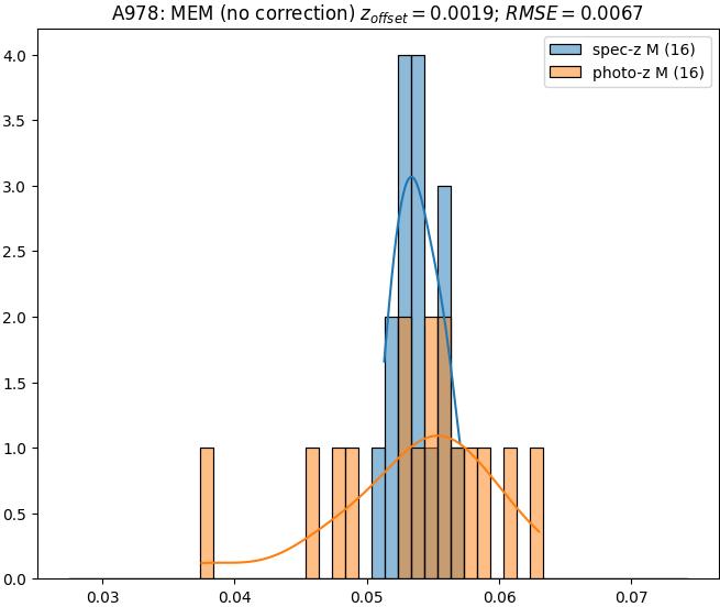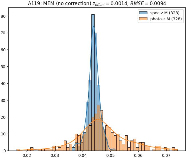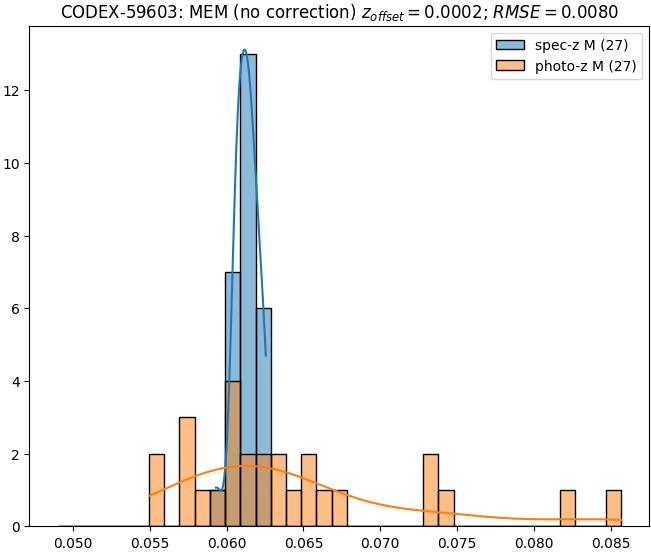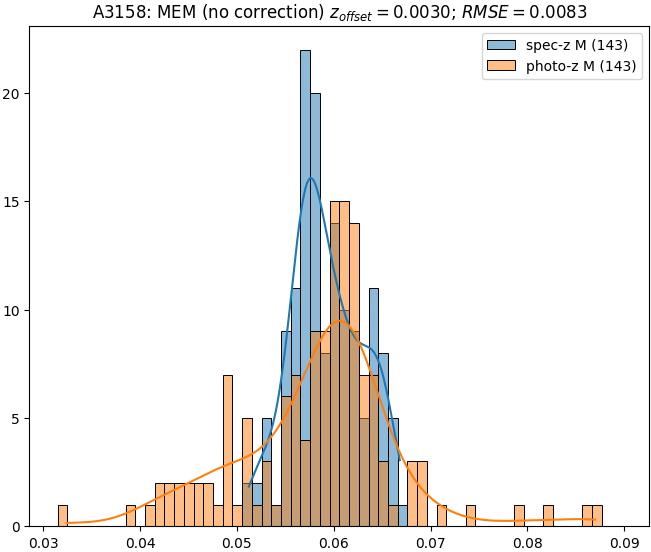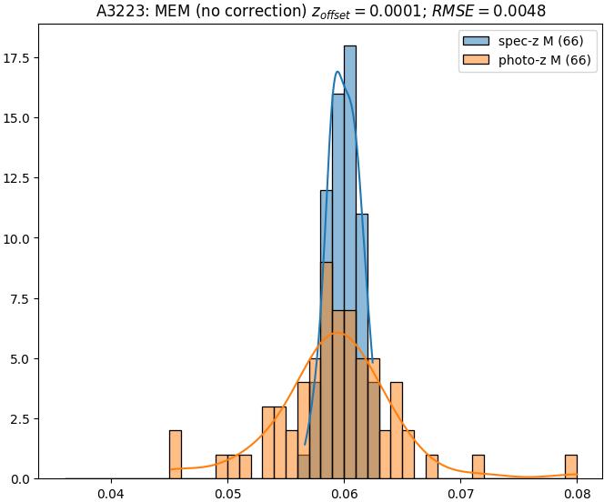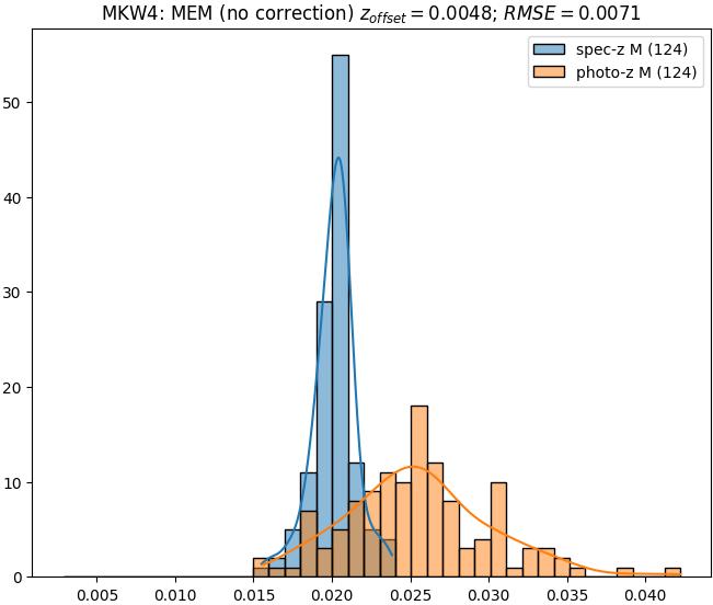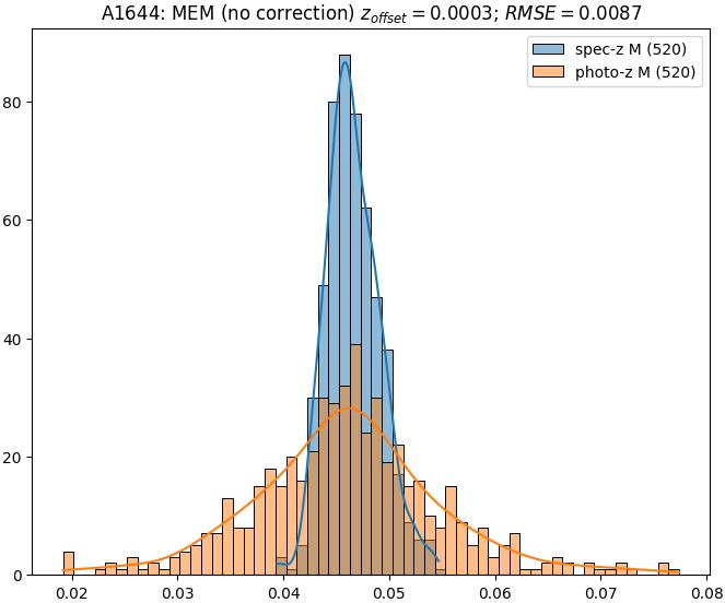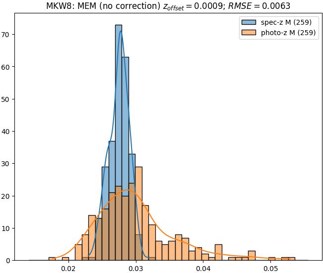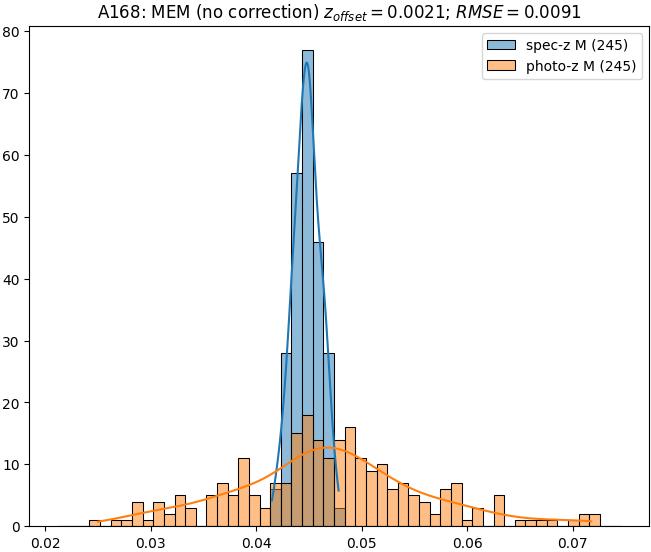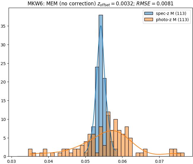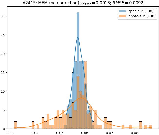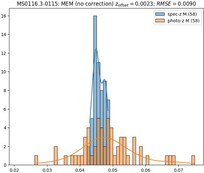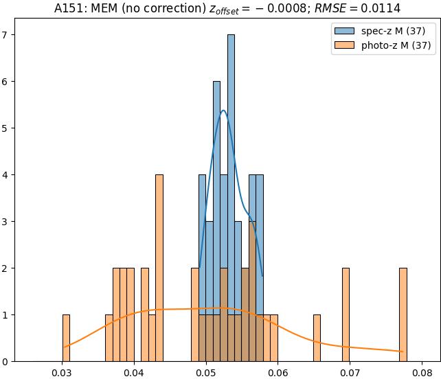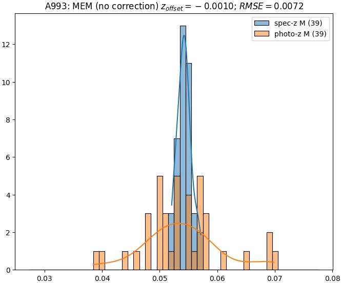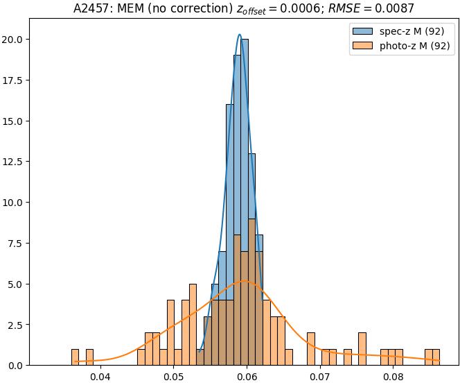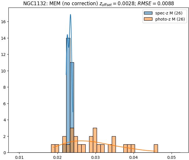 - ebase (M): RMSE between reference and estimated redshift without any correction (baseline) in the members sample
