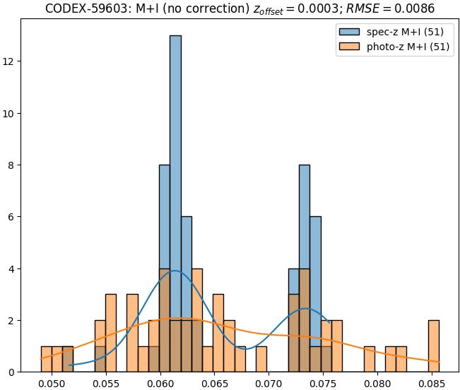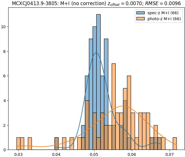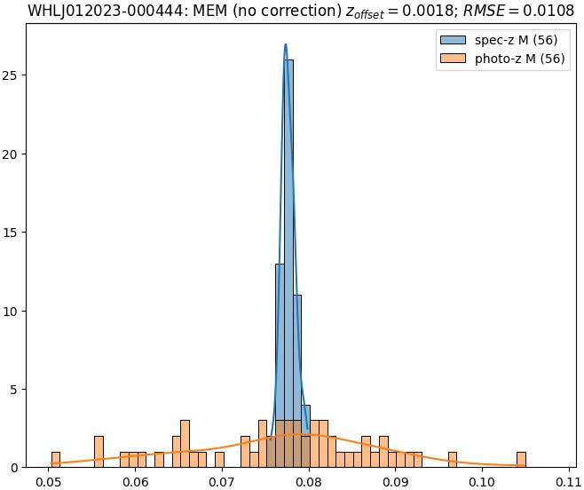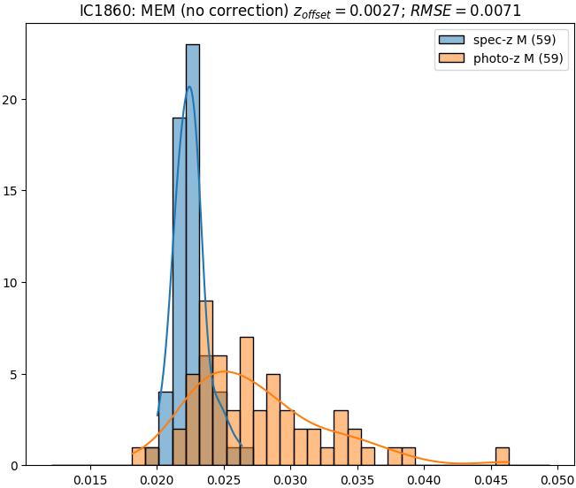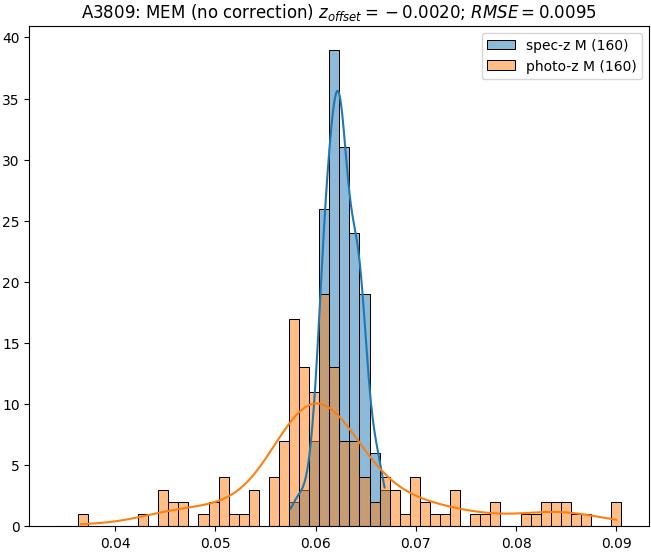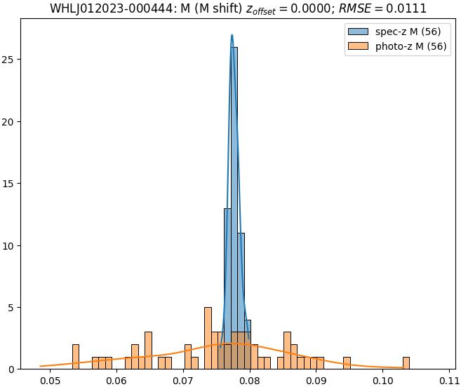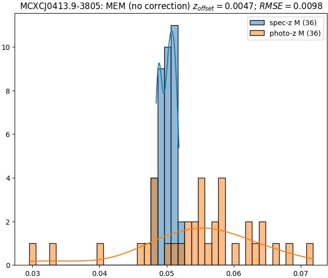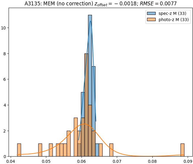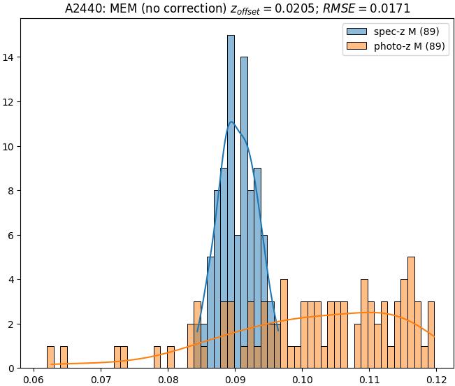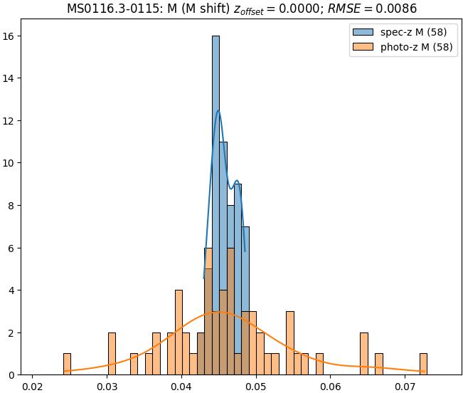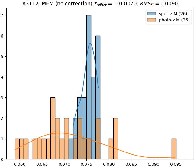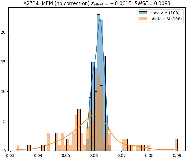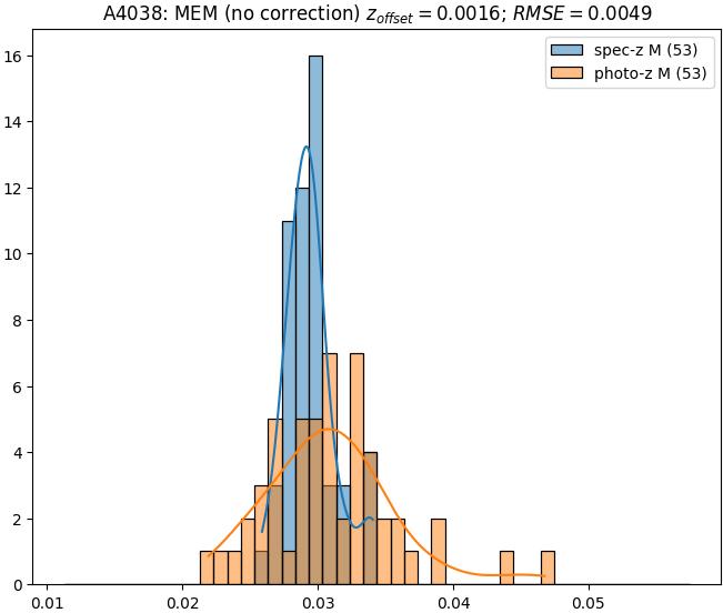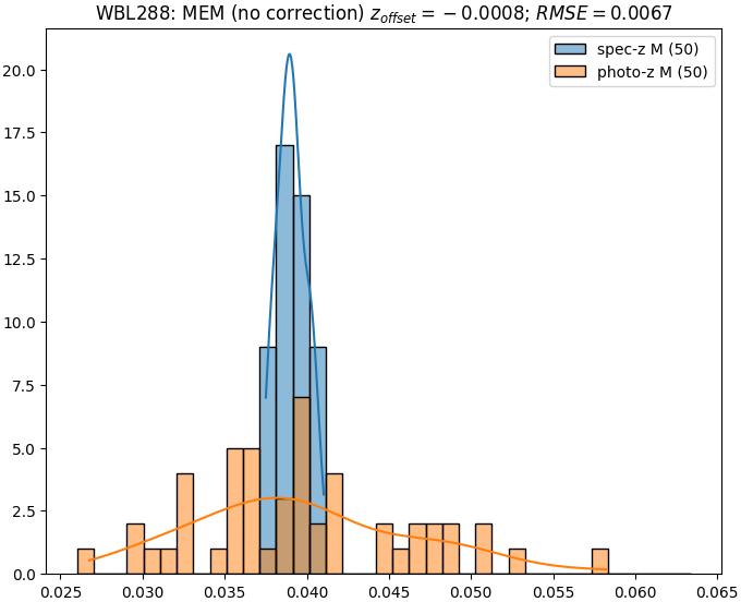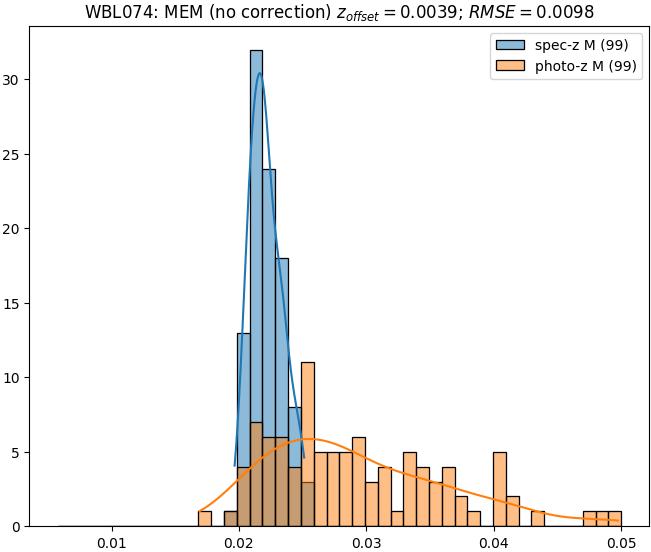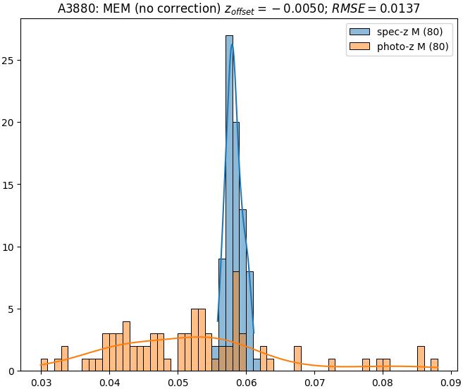 - ebase (M): RMSE between reference and estimated redshift without any correction (baseline) in the members sample