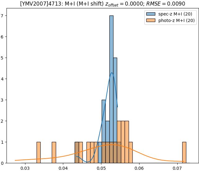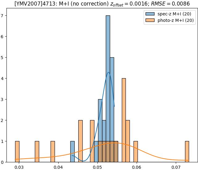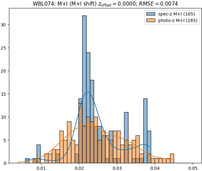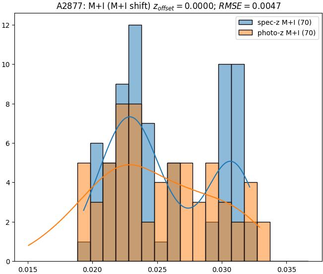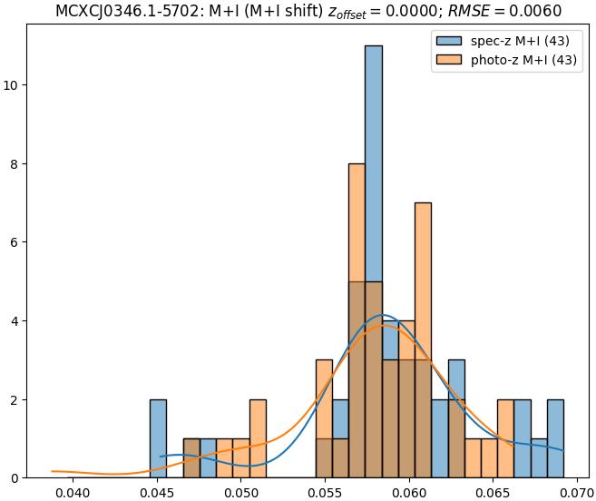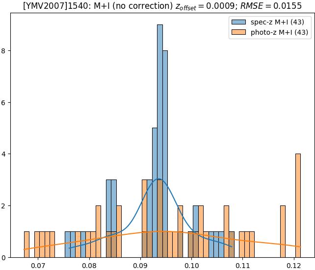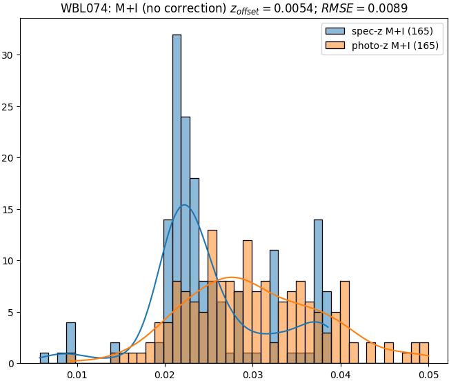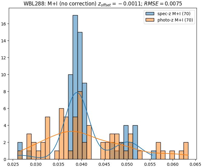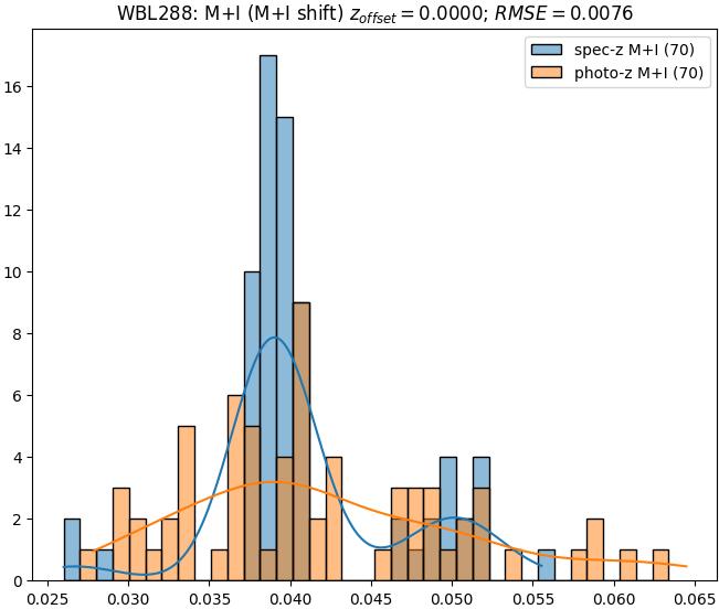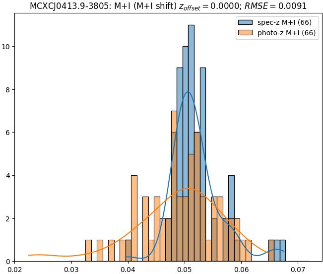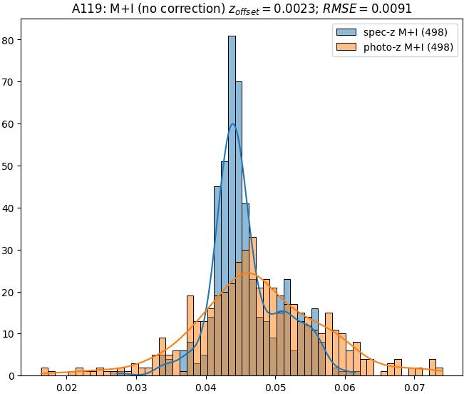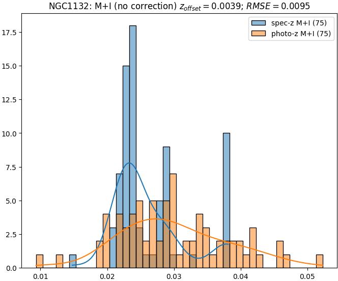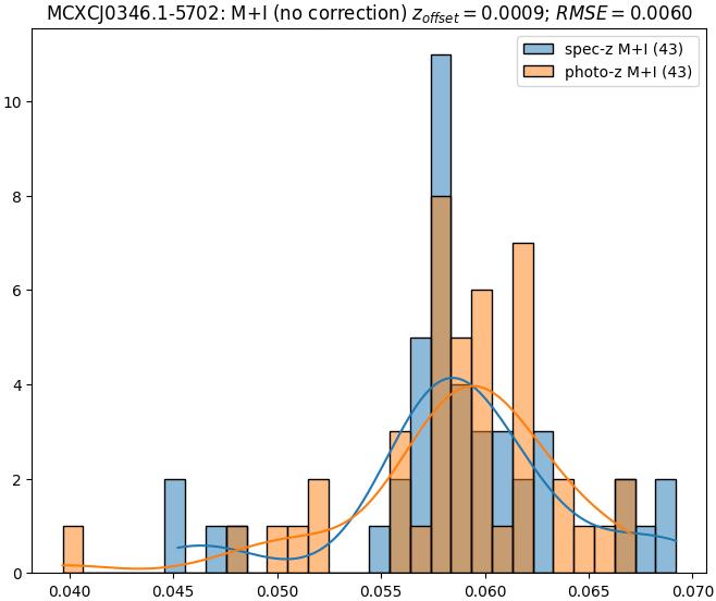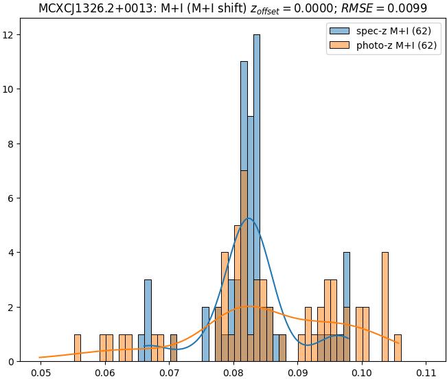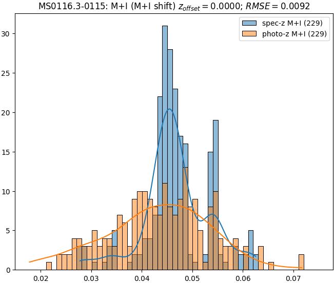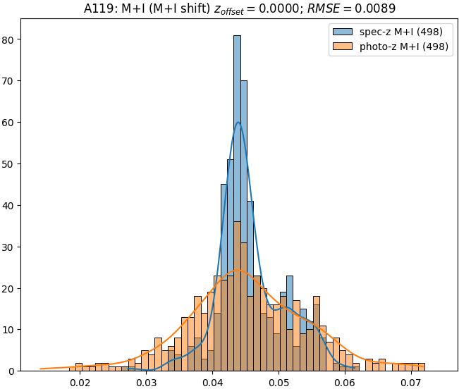 - eM+I (M): RMSE between reference and estimated redshift corrected by members+interlopers-offset in the members sample