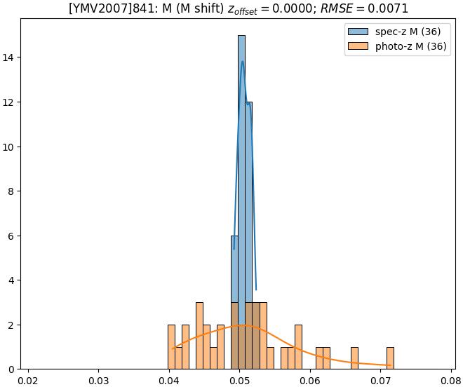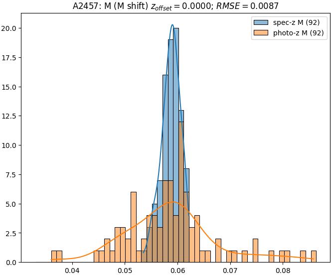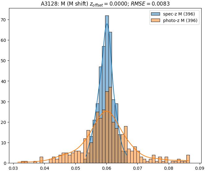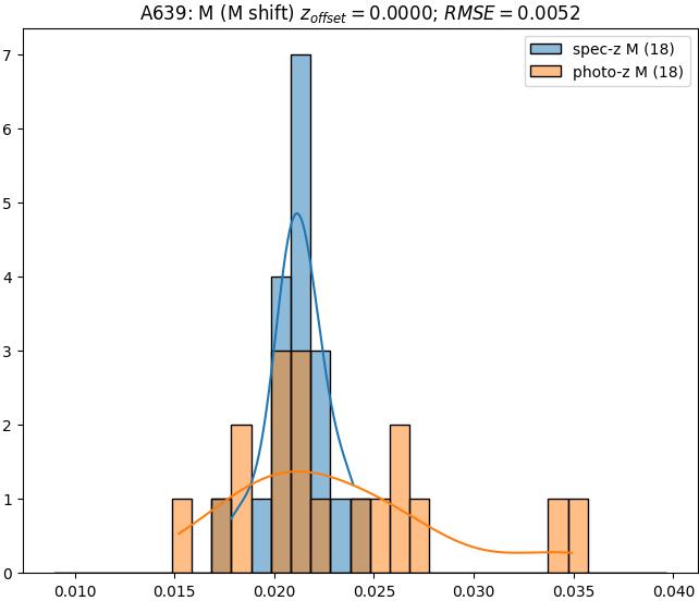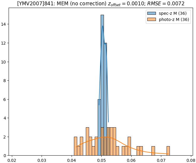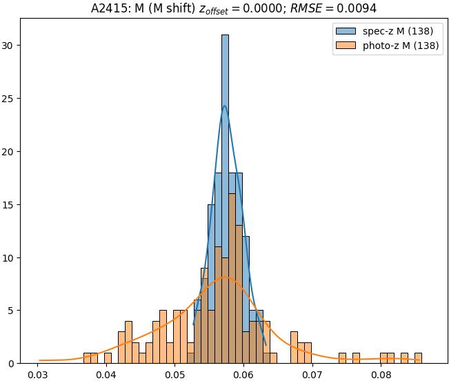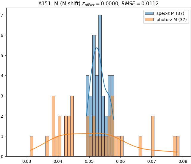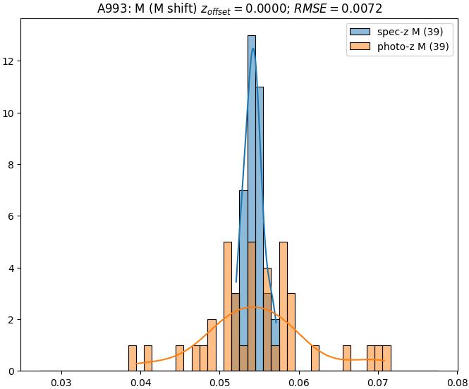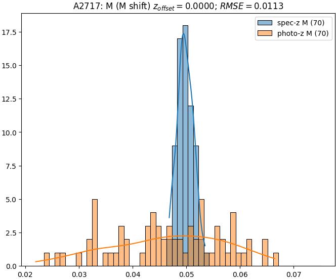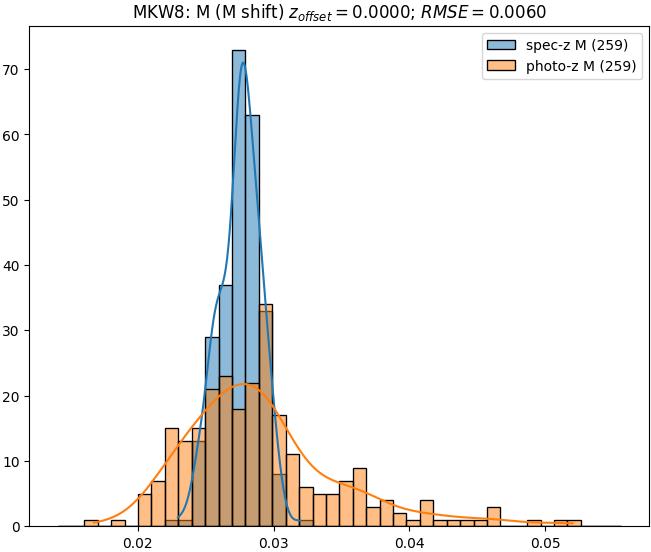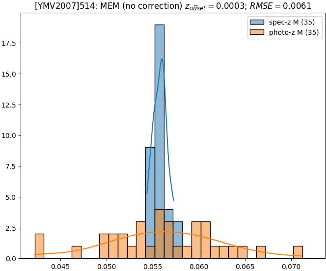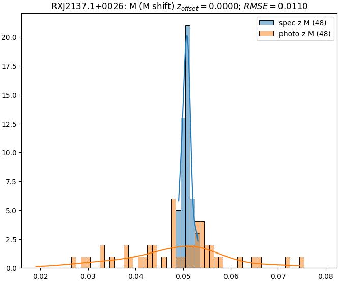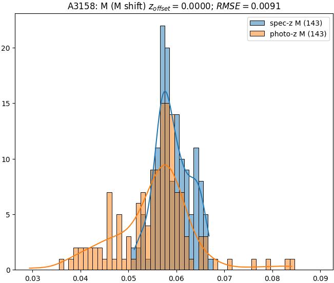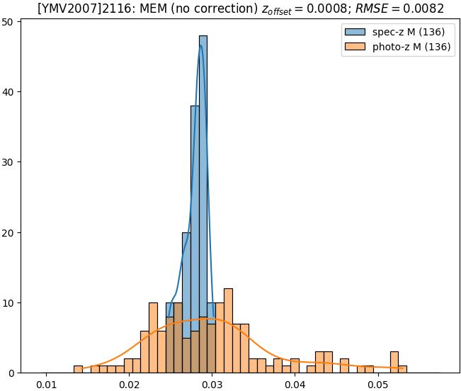 - eM (M): RMSE between reference and estimated redshift corrected by members-offset in the members sample