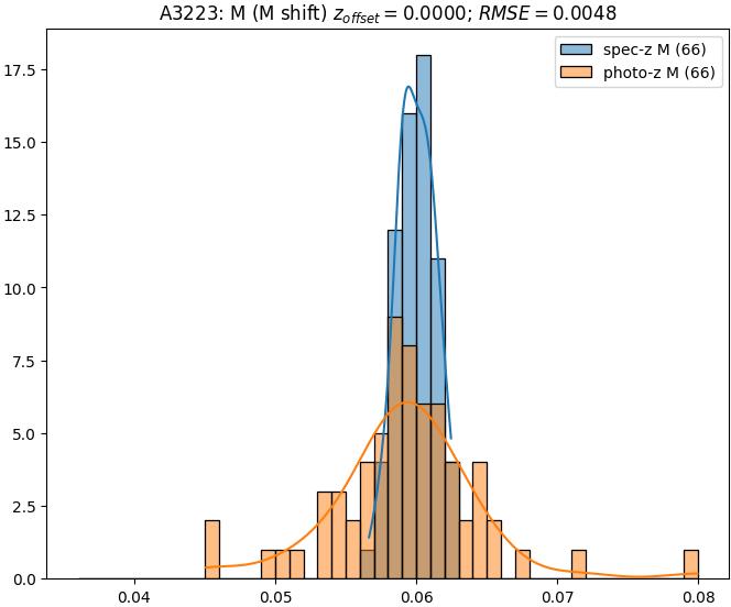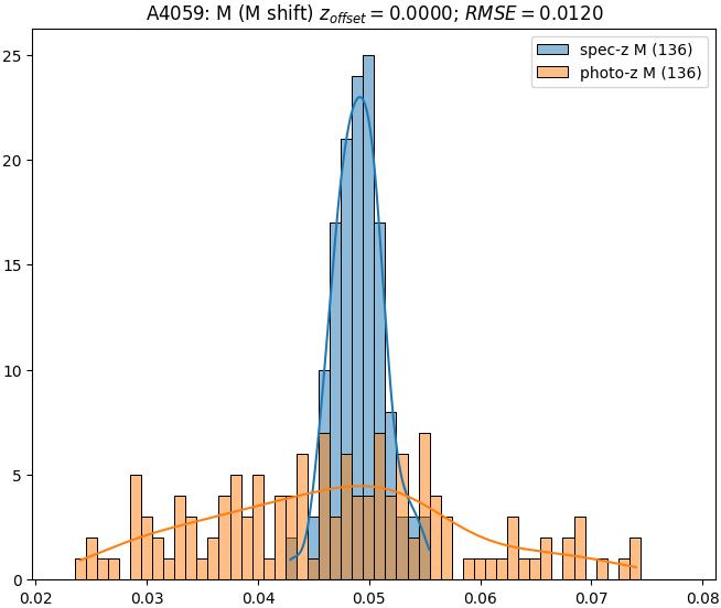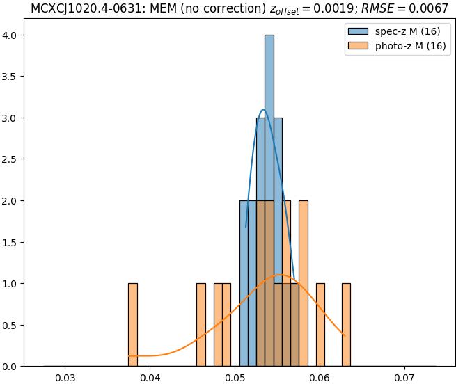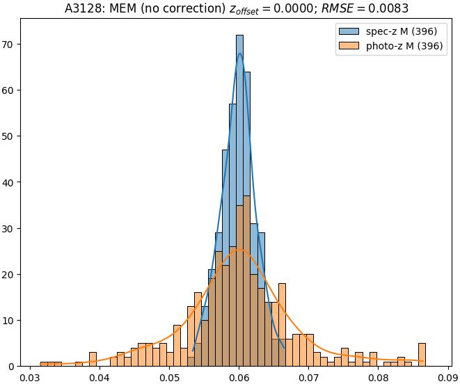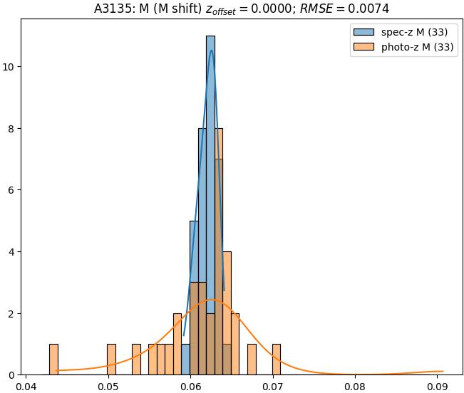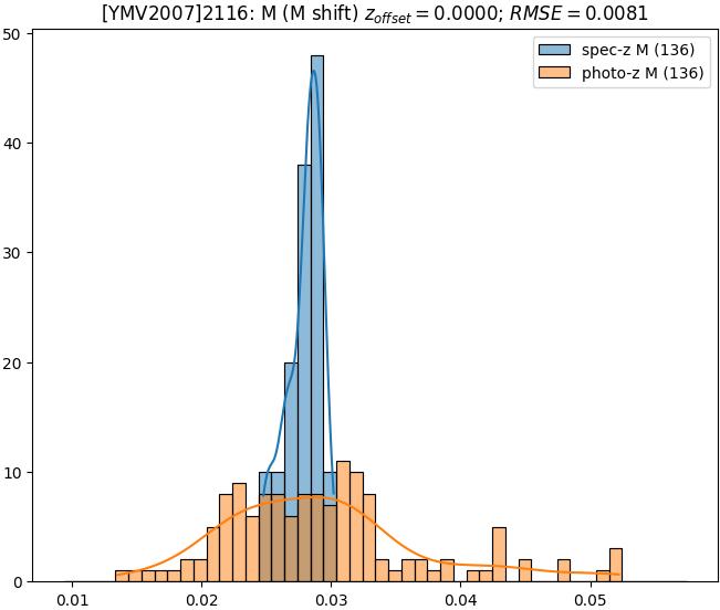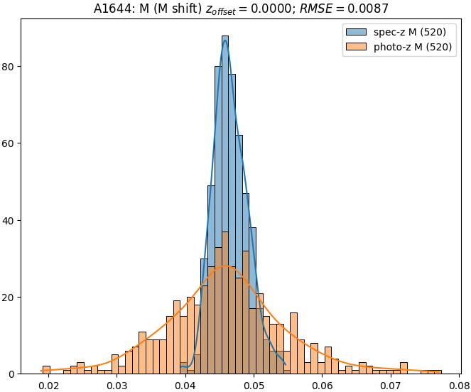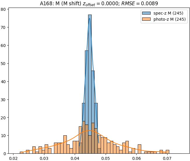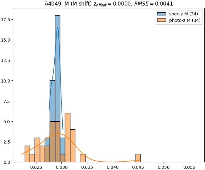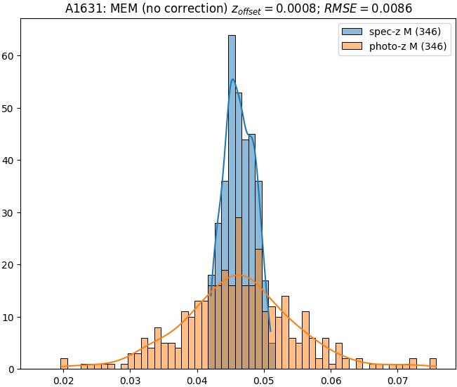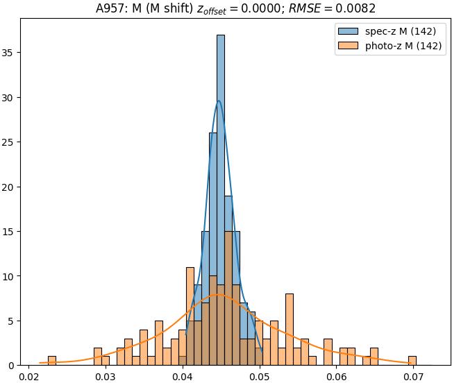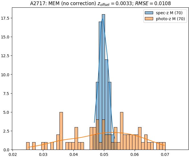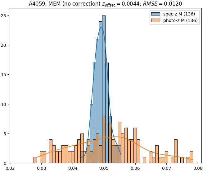 - eM (M): RMSE between reference and estimated redshift corrected by members-offset in the members sample
