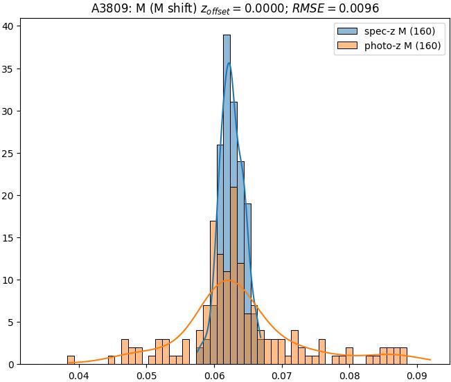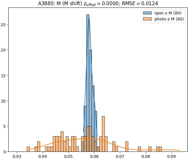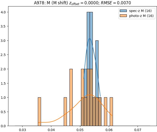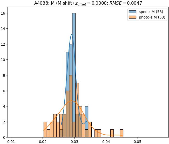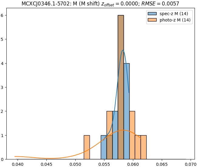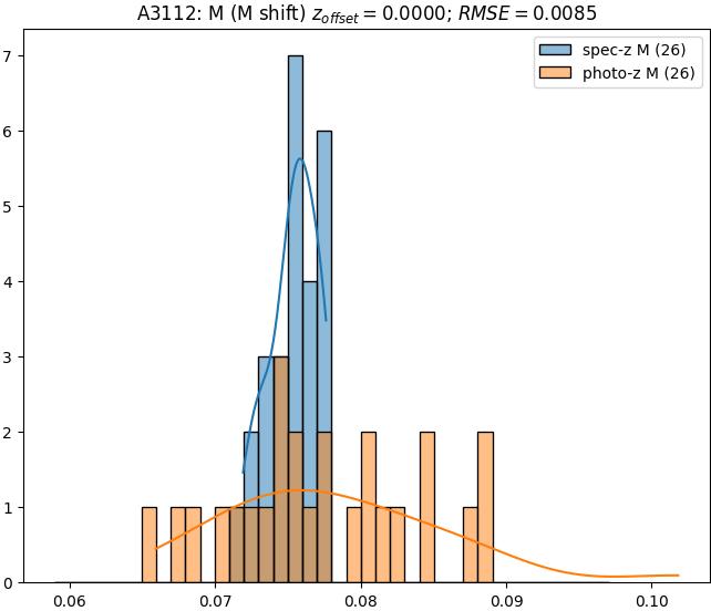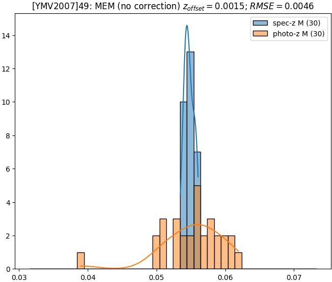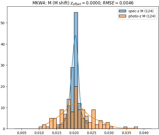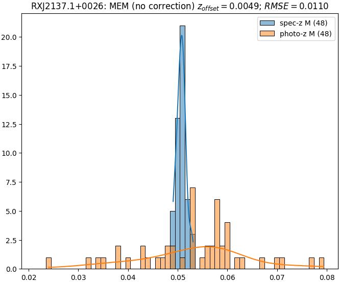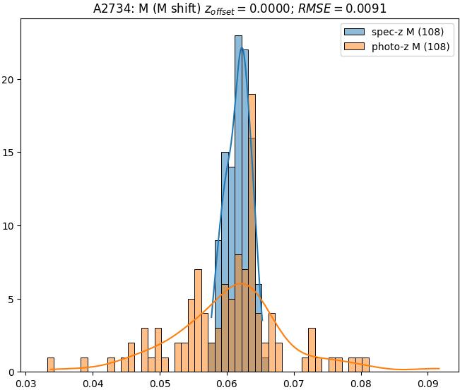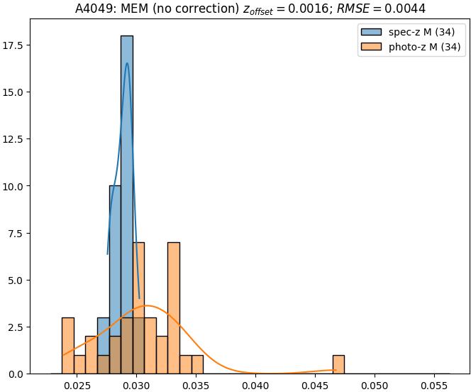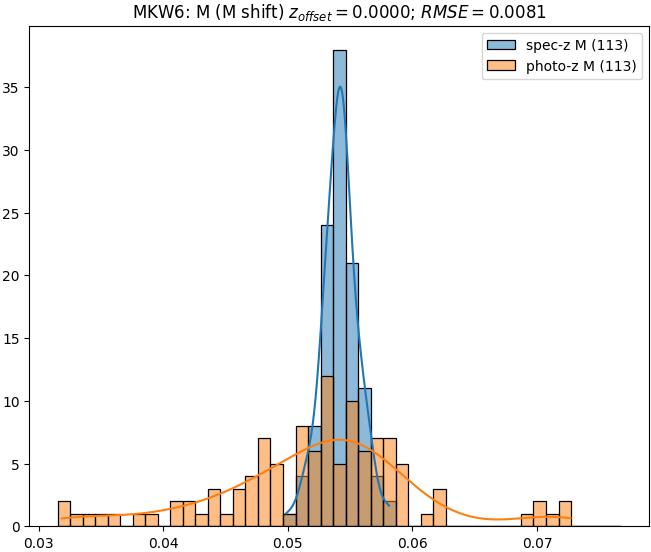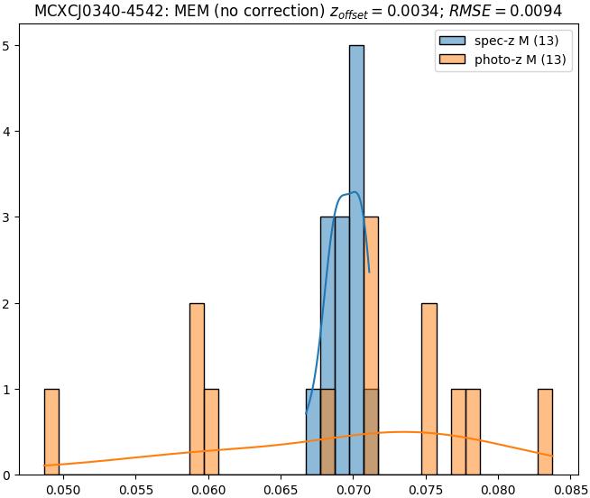 - eM (M): RMSE between reference and estimated redshift corrected by members-offset in the members sample