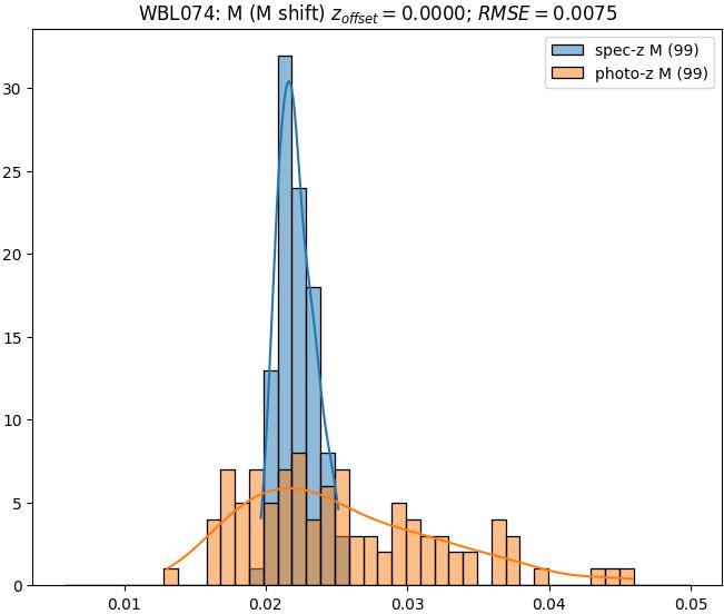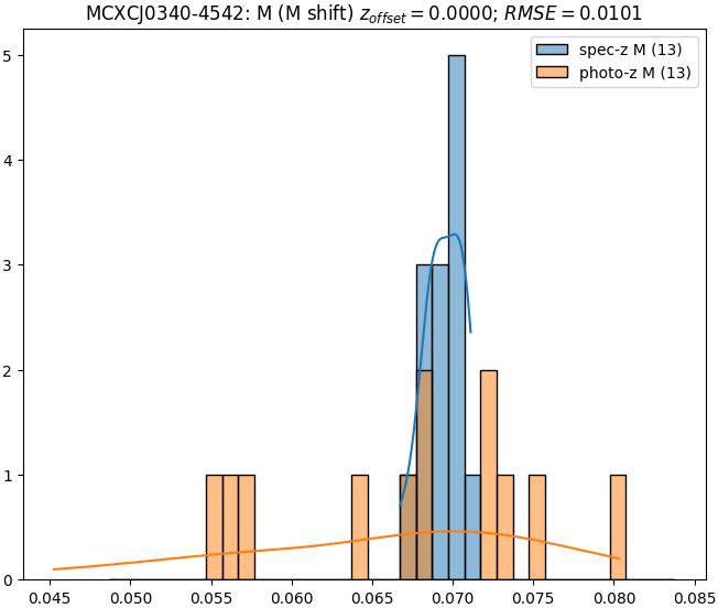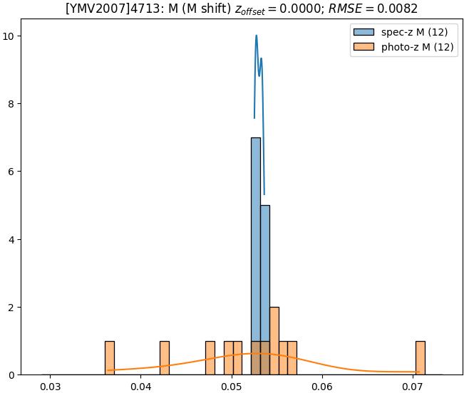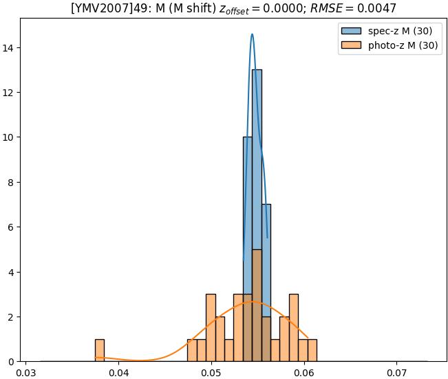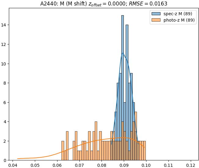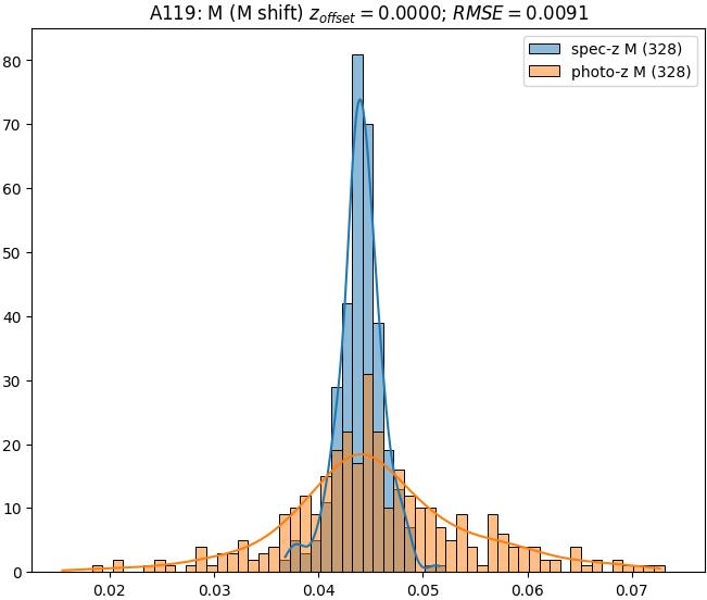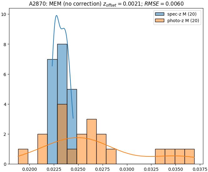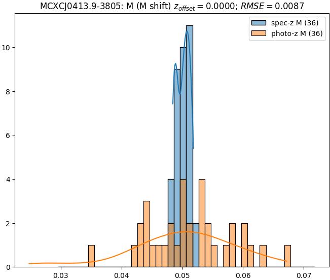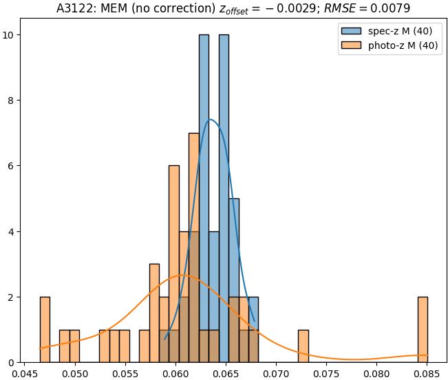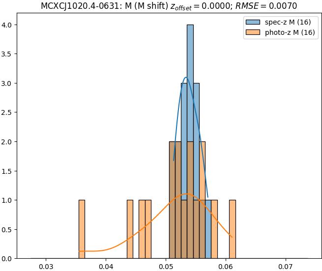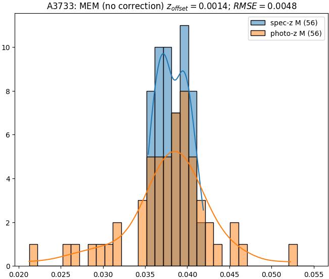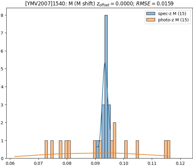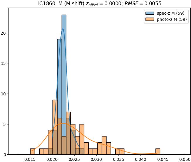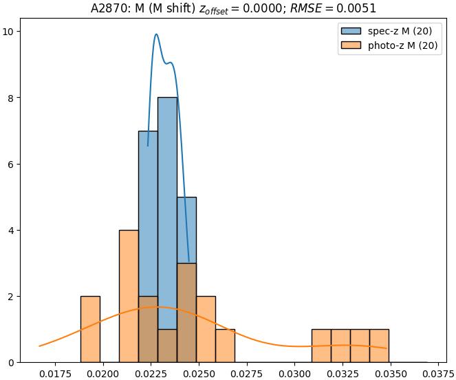 - eM (M): RMSE between reference and estimated redshift corrected by members-offset in the members sample