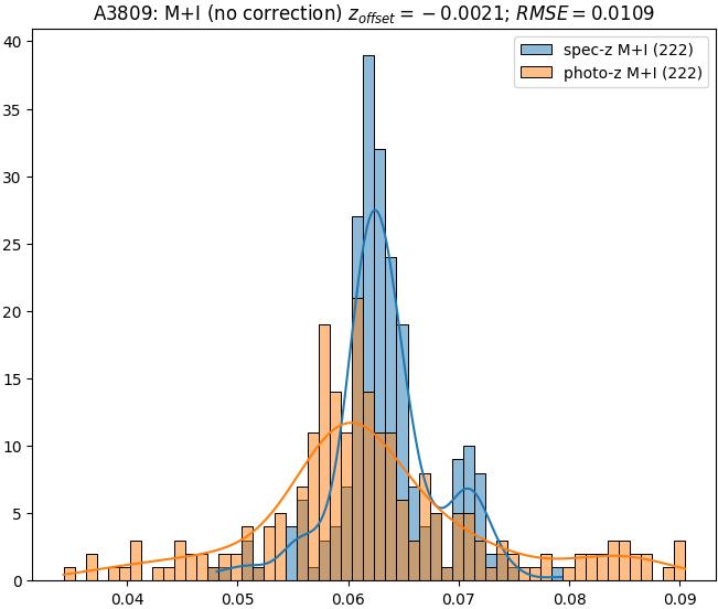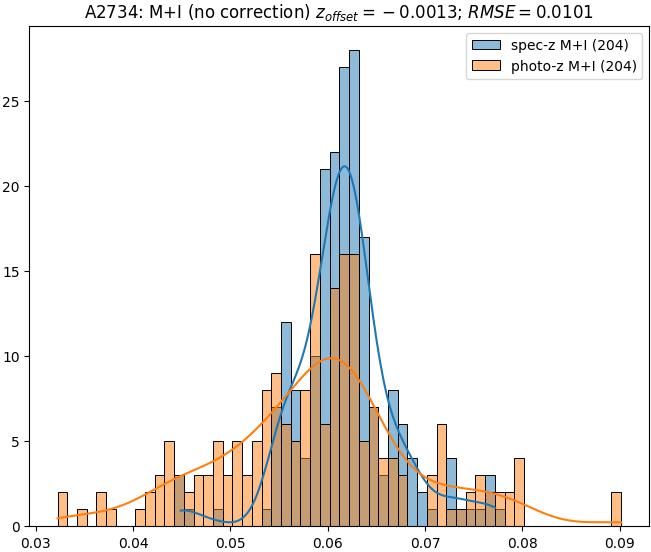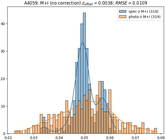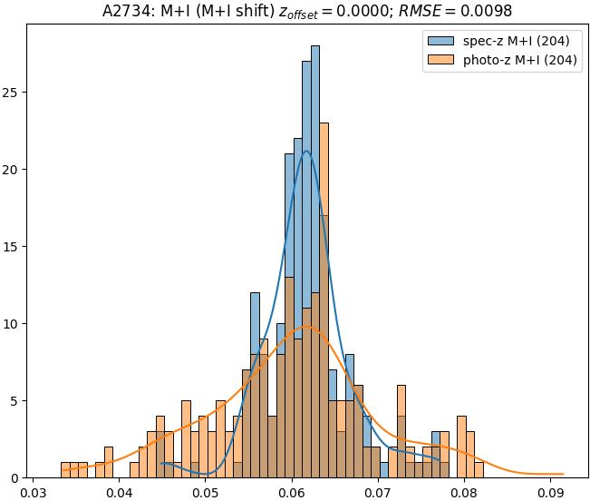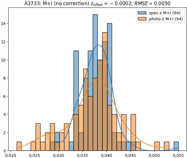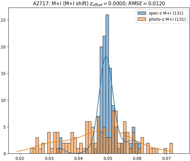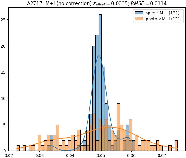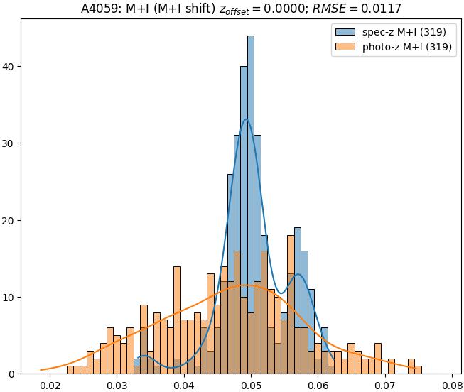 - eM+I (M+I): RMSE between reference and estimated redshift corrected by members+interlopers-offset in the members+interlopers sample