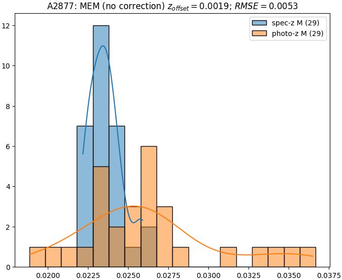 - eM (M+I): RMSE between reference and estimated redshift corrected by members-offset in the members+interlopers sample